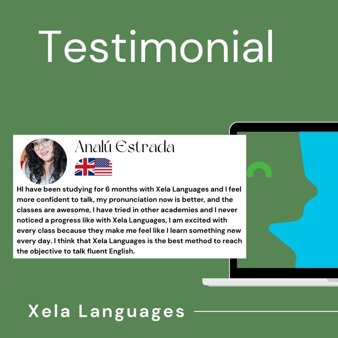 "Sobre mi aprendizaje con Xela Languages, yo estoy muy contenta y he mejorado mucho, aprendo vocabulario y gramática, el método de Xela languages es muy práctico y te hace hablar, debemos practicar también en casa, lectura, escuchar, escribir y hablar. Con la ayuda del profesor y nuestro esfuerzo podemos hablar el idioma que queramos ."